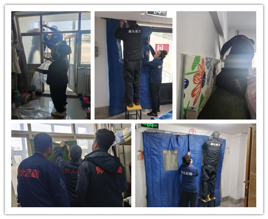为改善学生居住环境,自10月28日起,公寓服务中心采取悬挂棉门帘、加装防风膜、粘贴泡沫垫等多种措施,切实做好公寓冬季保暖工作。