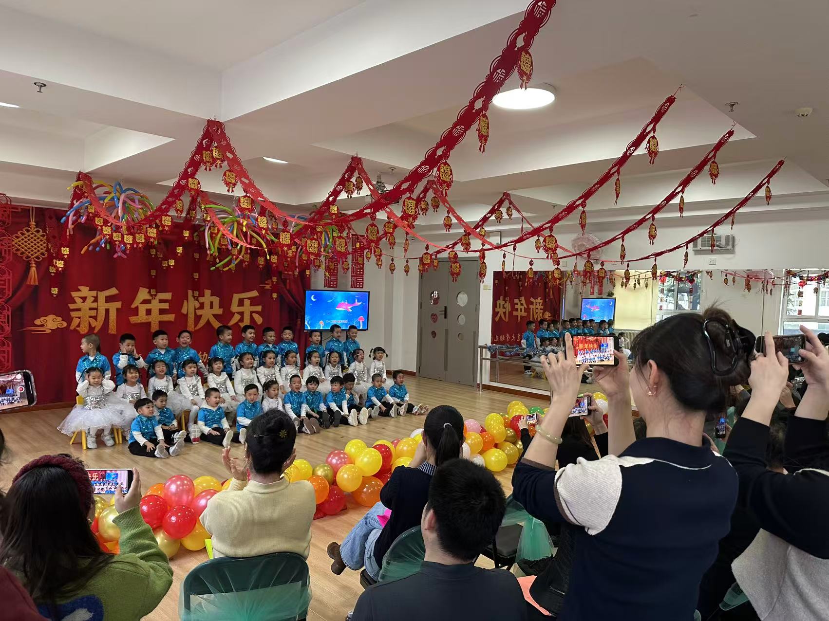 活动现场被红灯笼、中国结、彩色气球装点得年味十足,舞台背景上“新年快乐”的金色大字格外醒目。汇演在孩子们铿锵有力的鼓乐表演中拉开序幕,小演员们身着红绸服饰,手持鼓槌敲打出欢快的节奏,瞬间点燃现场气氛;随后的歌舞节目里,孩子们用稚嫩的歌声演唱新年童谣,跟着旋律跳出活泼的舞步,一举一动都充满童真;情景表演环节,孩子们化身“小小福娃”,演绎传统年俗故事,让大家在趣味表演中感受中华传统文化的魅力。每一个节目都凝聚着孩子们的努力与老师的用心,台下不时响起阵阵掌声与欢呼声。家长们也纷纷用镜头记录下孩子的精彩瞬间,现场处处洋溢着温馨与欢乐。