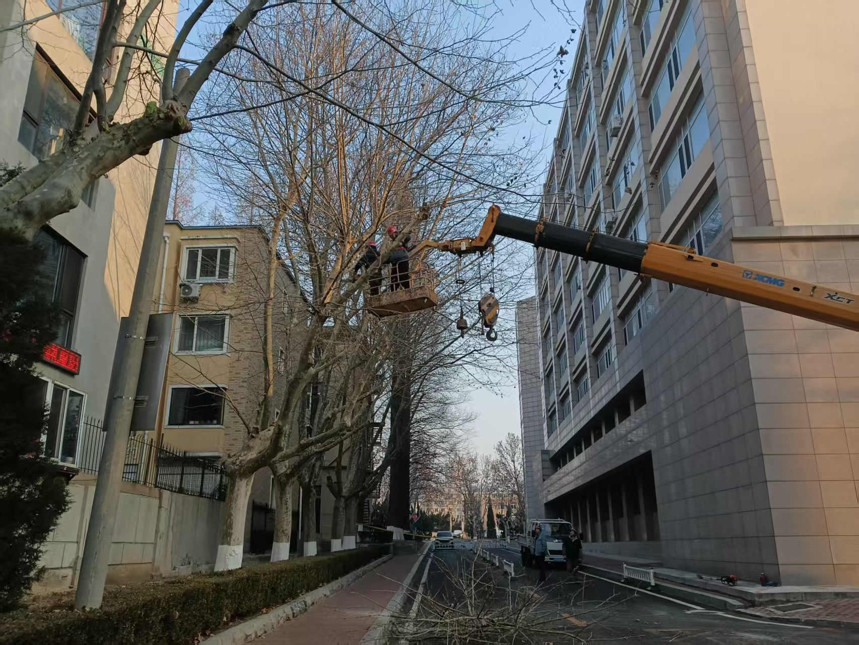 近日,物业绿化部对黄河路校区南院美术馆及北院主道与住宅楼相邻的11棵法桐进行了精心修剪。此次行动旨在消除安全隐患,保护周边建筑免受树枝划伤,同时提升校园绿化环境。