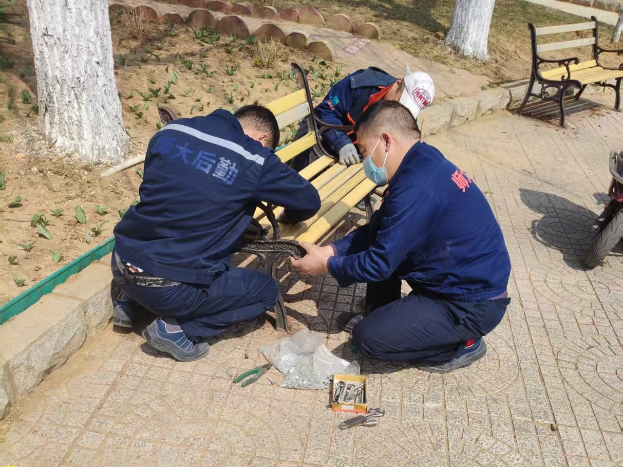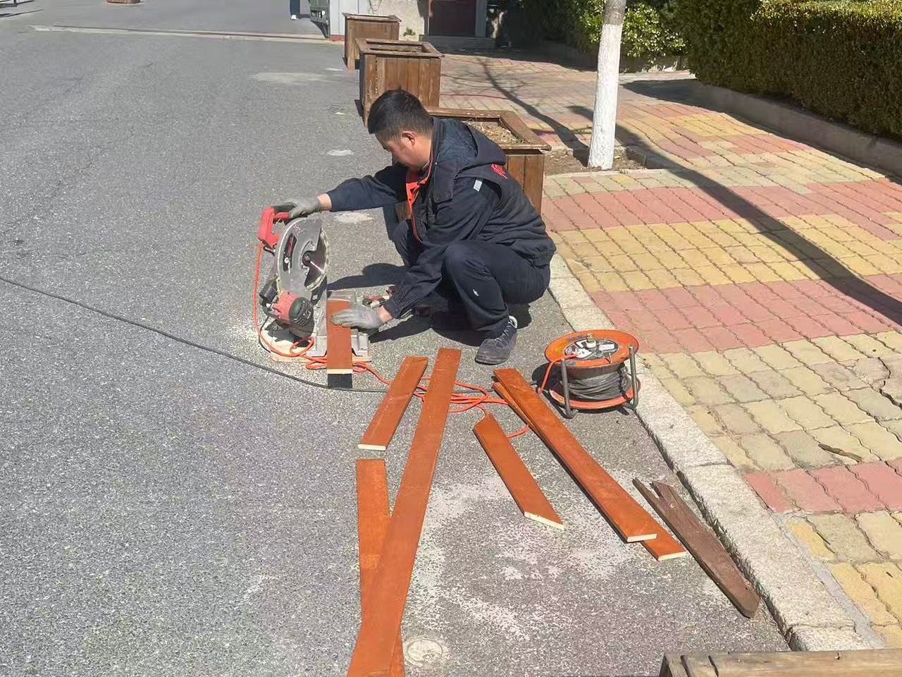 图书馆前广场作为师生休憩、交流的重要场所,部分排椅因长期使用出现破损、松动等问题。物业维修部对6把破损排椅进行全面修复,经过打磨、加固、翻新等工序,排椅重新恢复整洁稳固,为师生提供了安全舒适的休憩空间。同时,针对交流中心门前花箱防腐木老化、破损的情况,维修人员更换了全新防腐木,并对所有花箱进行重新打磨、刷油处理,既增强了花箱的防潮抗腐性能,又提升了校园景观整洁度,让交流中心门前环境焕然一新。