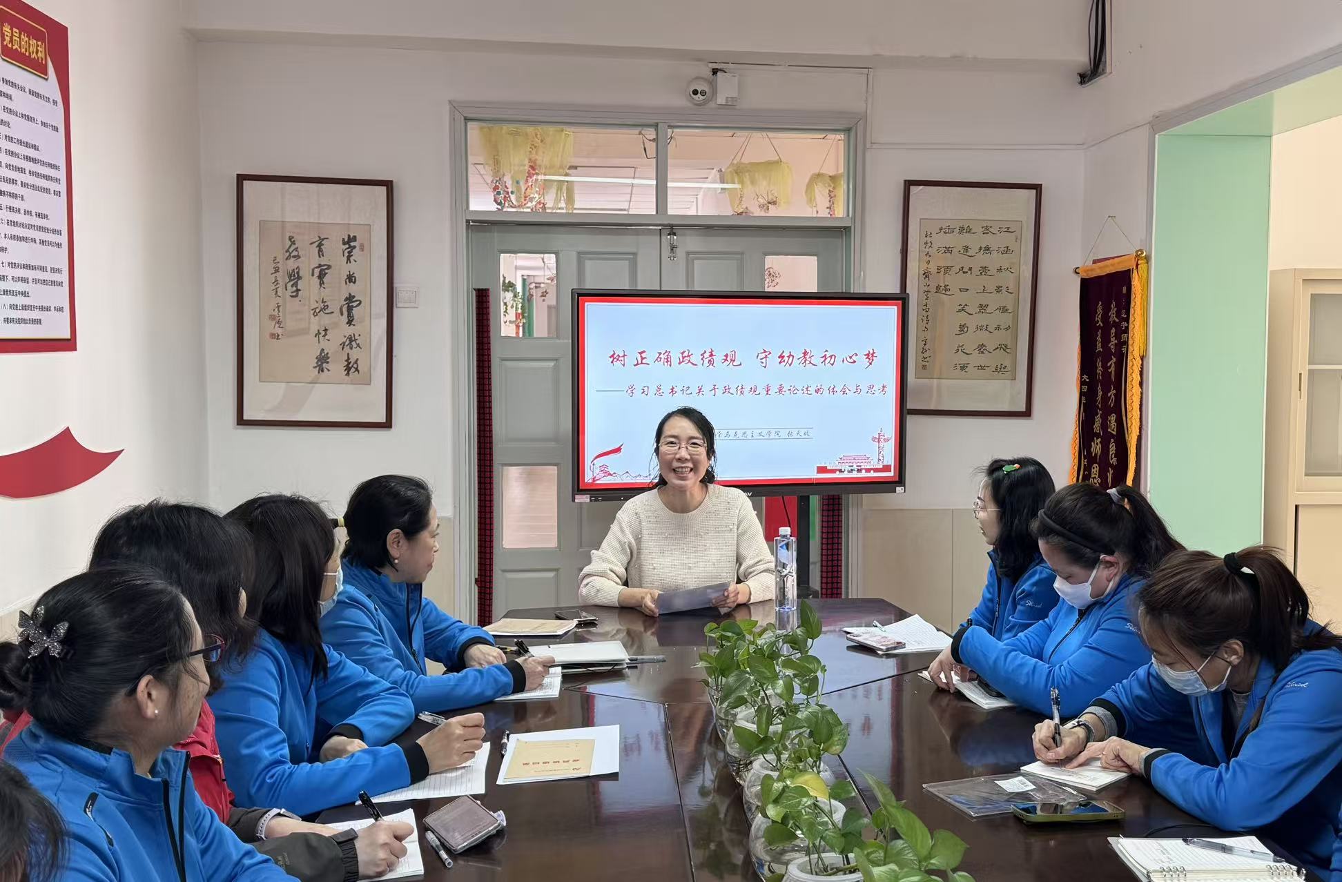 为深入学习贯彻习近平新时代中国特色社会主义思想,推进“师德建设年”走深走实,强化教师思想政治引领与正确政绩观树立,近日,辽宁师范大学幼儿园特邀辽宁师范大学马克思主义学院张天娇博士,为全体党员教师、骨干教师带来一场题为“树正确政绩观,守幼教初心梦”的专题党课。园领导班子及全体教职工共同参与学习。