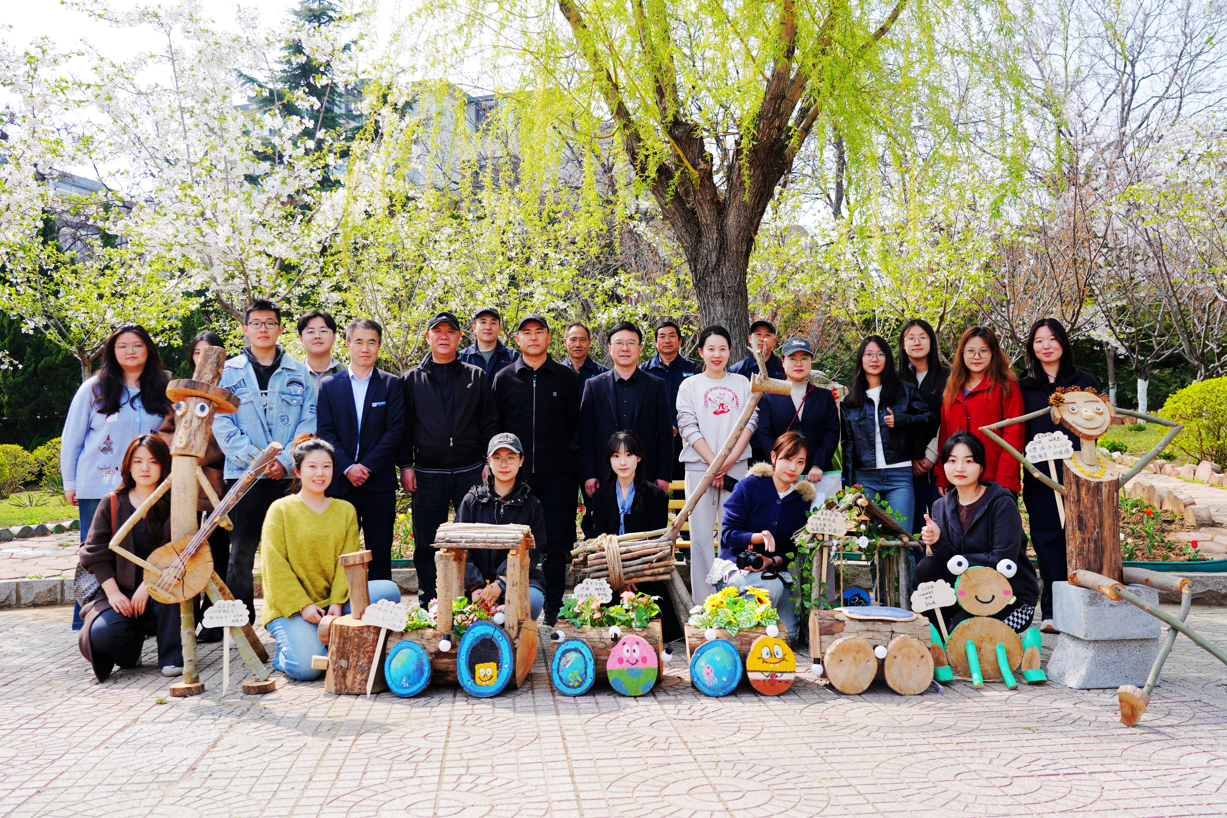 本次创作以原木为材,学生们发挥专业所长,精心打造小火车、小木屋、悠闲小人、林间乐手等系列作品,造型生动、童趣盎然,兼具自然质感与艺术气息。后勤物业与美院学子分工协作,从设计、打磨到组装、摆放全程配合,让校园绿化与美育实践有机结合。